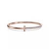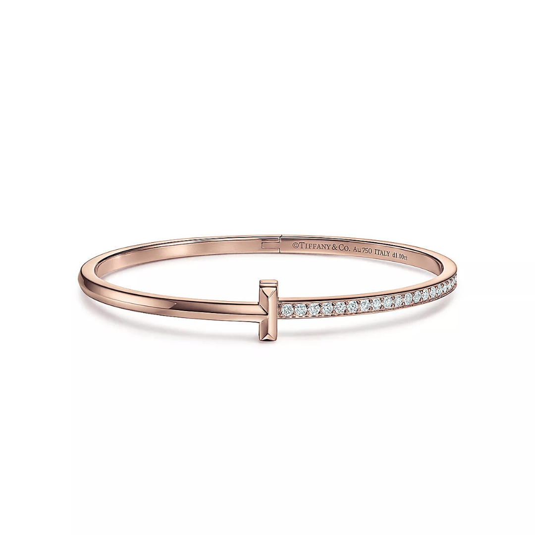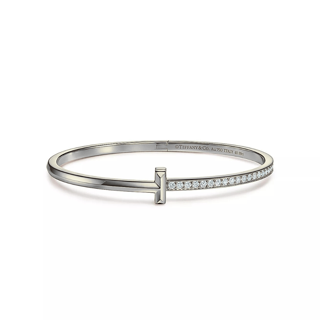 - One half of the T-shaped opening is pavé-set with cubic zirconia