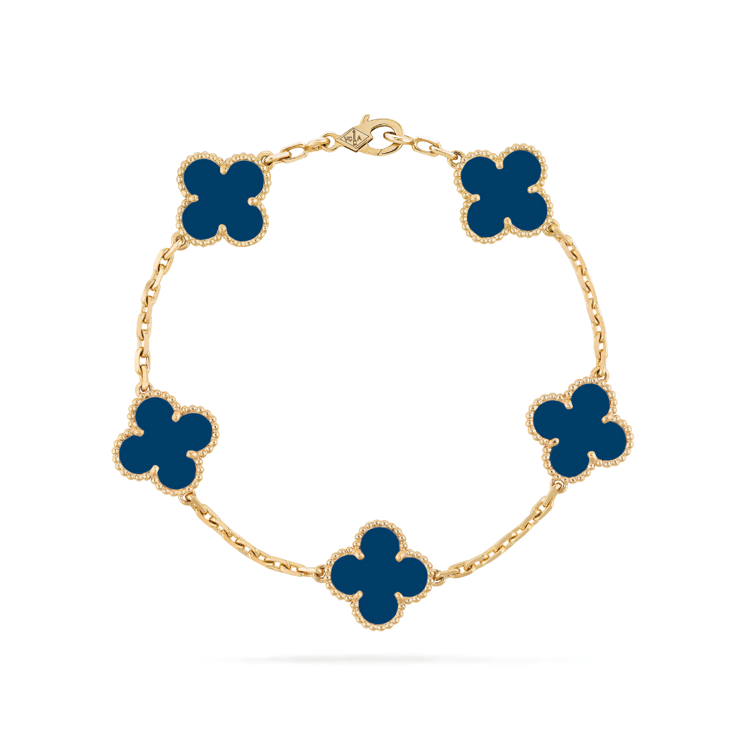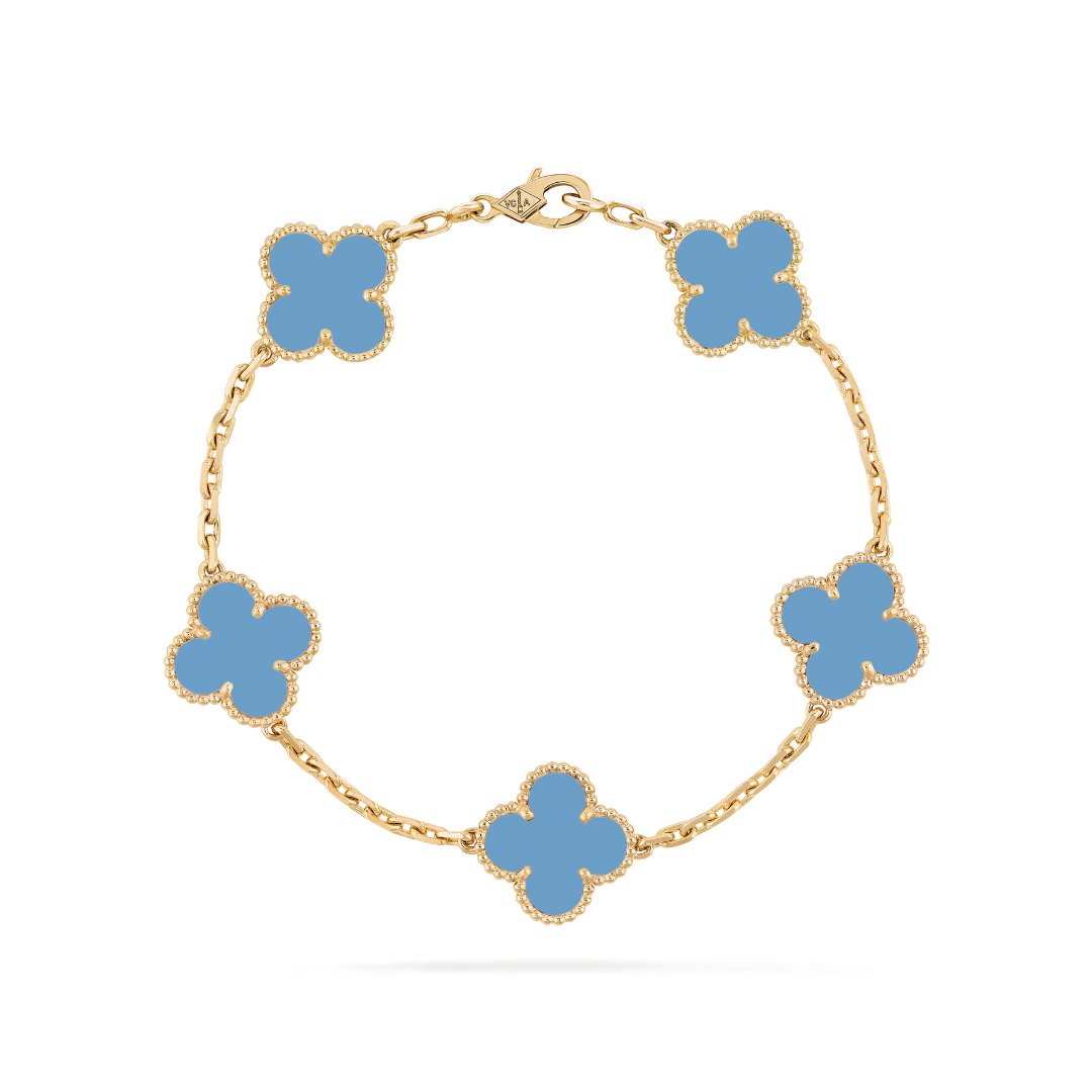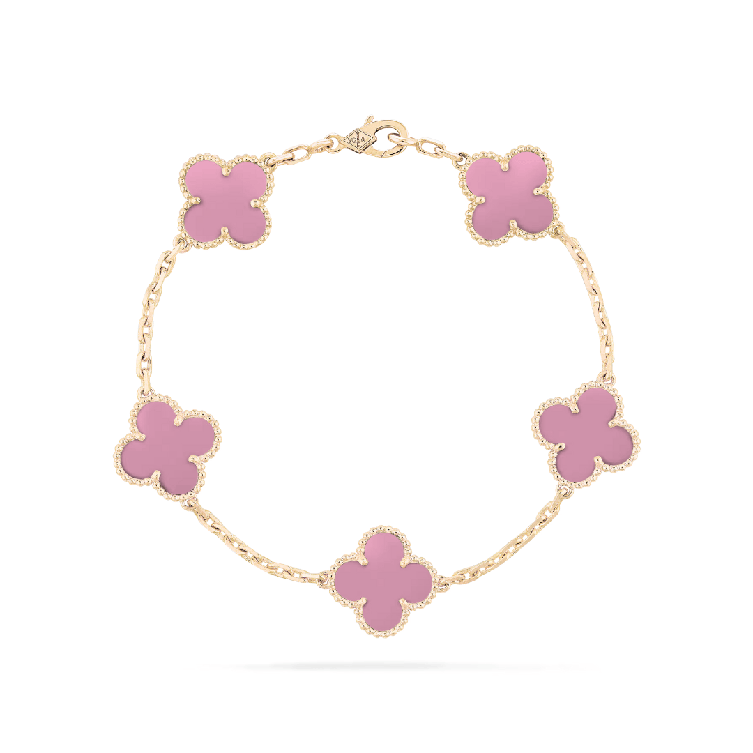 This version of the Petales Bracelet features five colourful clover-style motifs, each filled with rich enamel-like inlay. Available in nine shades. The perfect way to add a pop of color to your stack.