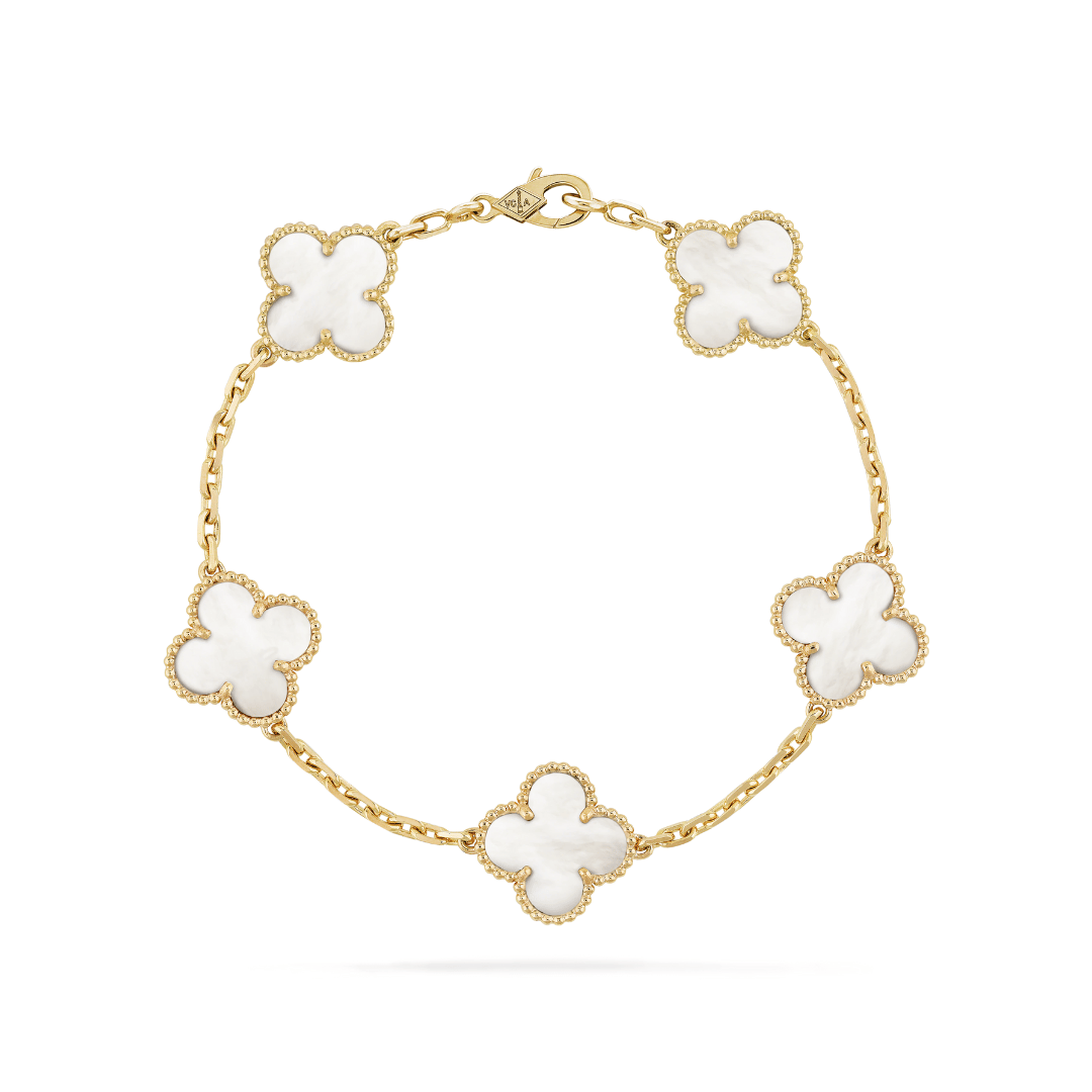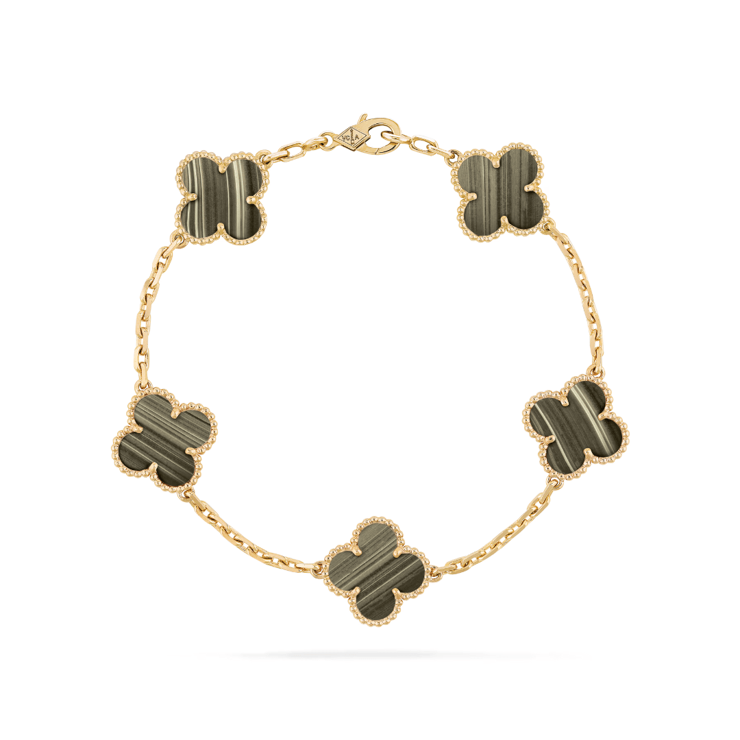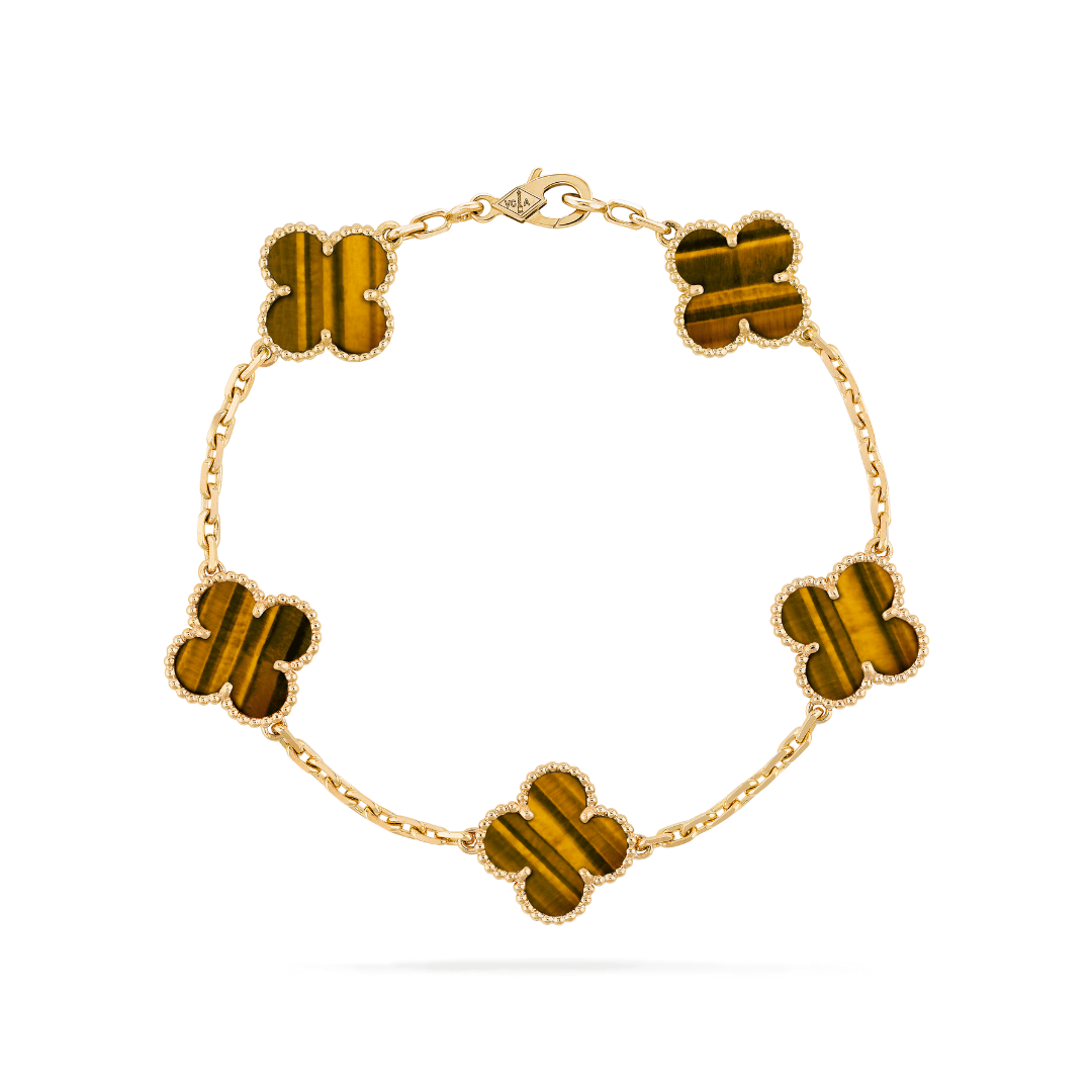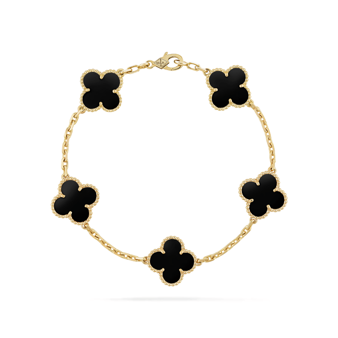 This version of the Petales Bracelet features five colourful clover-style motifs, each filled with rich enamel-like inlay. Available in nine shades. The perfect way to add a pop of color to your stack.