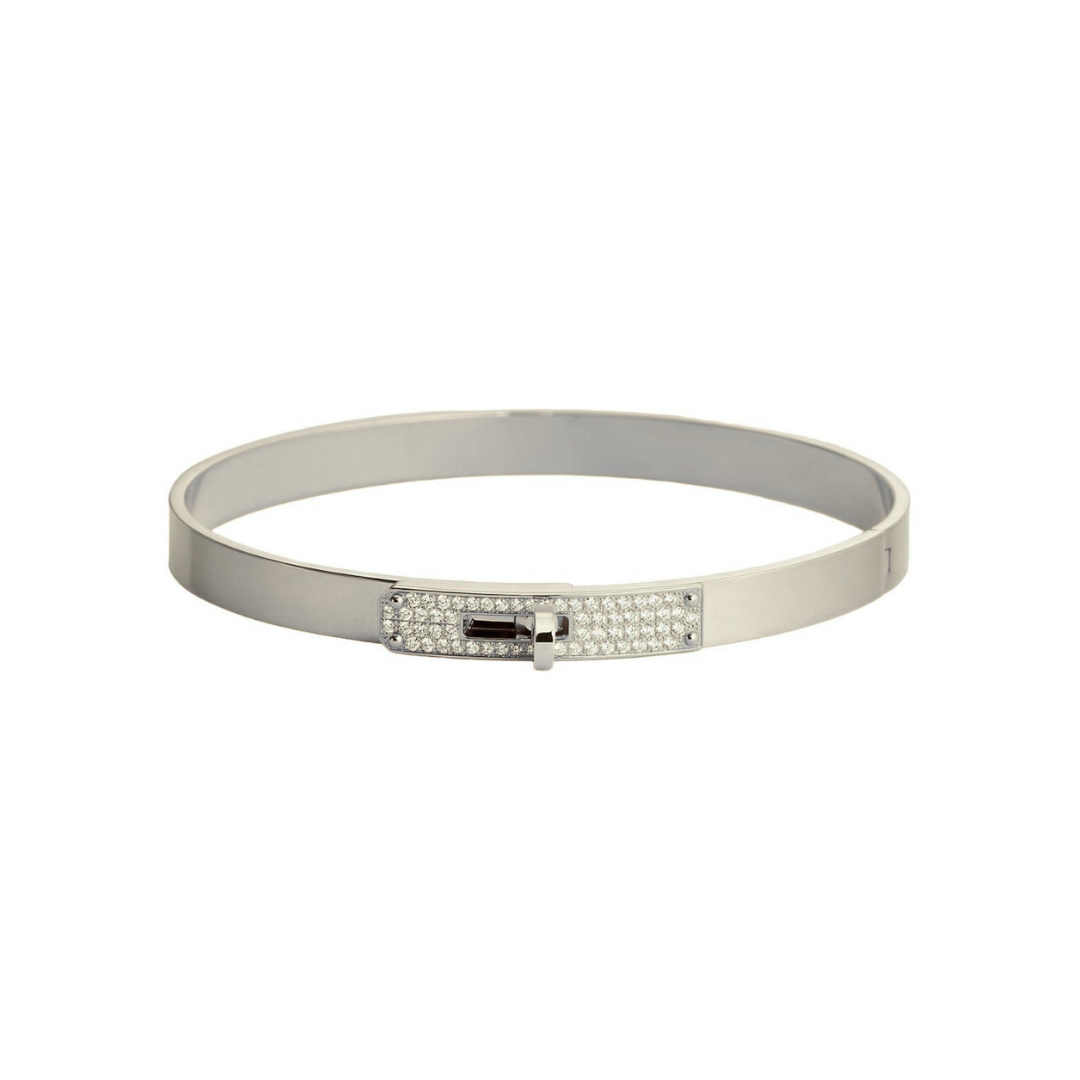 the Haven Bracelet features a sleek, structured silhouette with a front-facing panel of cubic zirconia stones for just the right amount of shimmer.