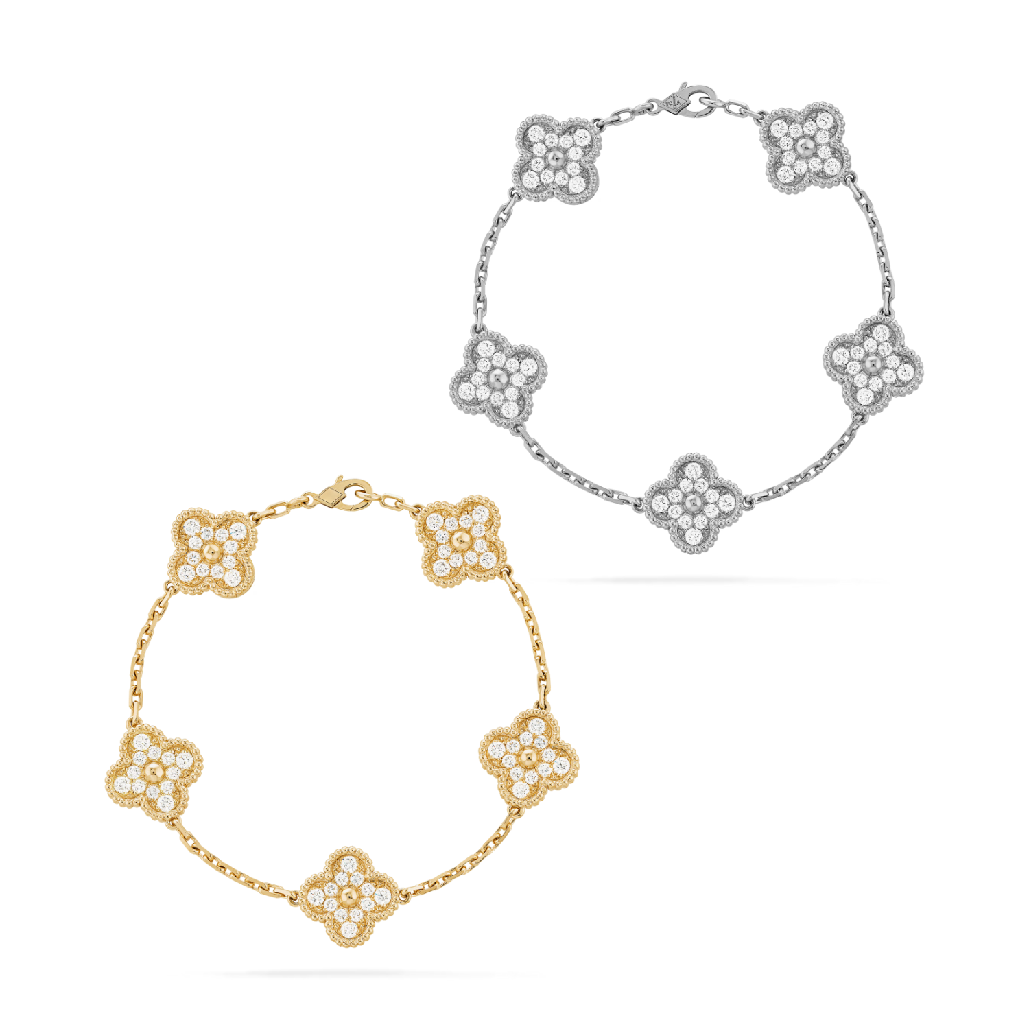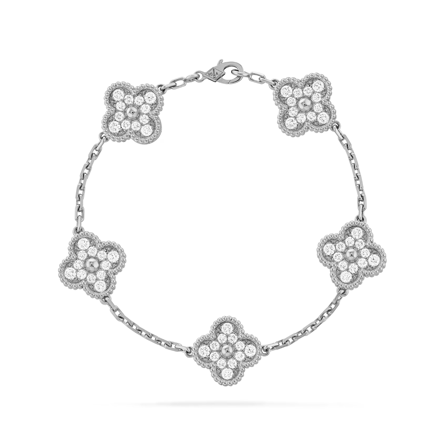 For the sparkle lovers. Every single one of the five clover-style motifs is adorned with cubic zirconia stones, creating a piece that catches the light from every angle. Bold, radiant, and feminine.